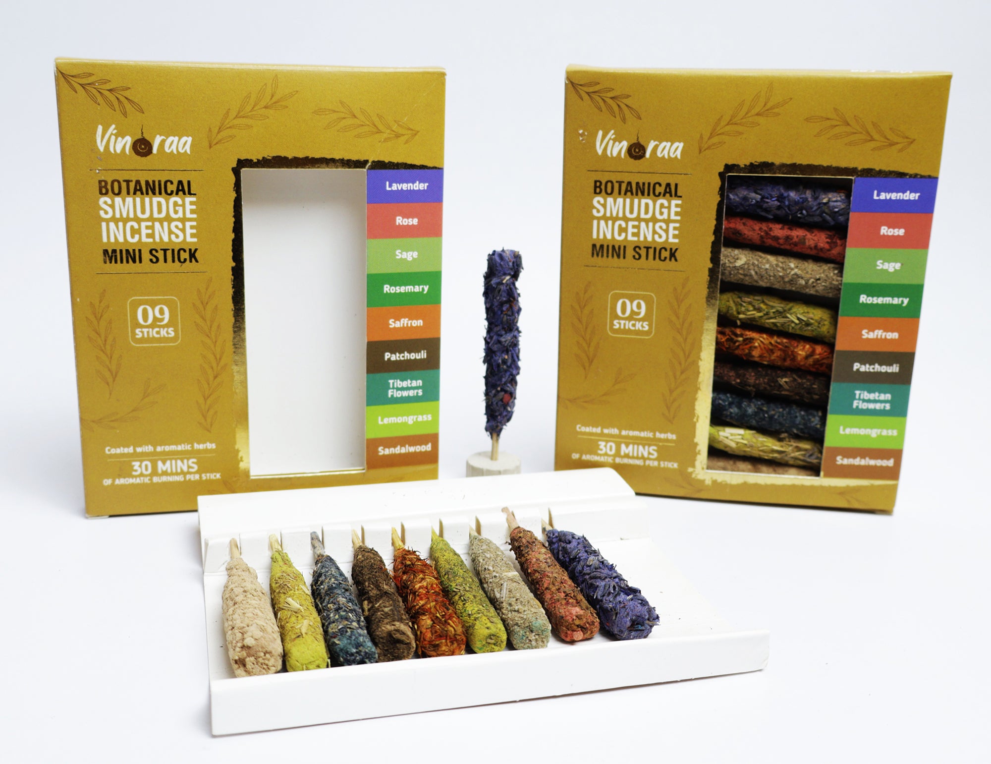 Botanical Smudge Incense Mini 9 Sticks, Coated with aromatic herbs 30 Minutes of AROMATIC BURNING PER STICK